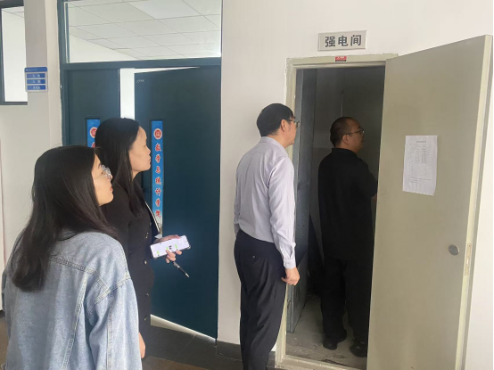 检查组先后走访了我院的教学区域、多功能会议室、核心机房教室、强电配电间等安全关键场所,开展了全方位、多层次的安全隐患排查。检查内容涵盖配电设施运行状态、教学科研设备安全使用情况、消防逃生通道通畅性、电动车停放管理等重点环节,尤其对危险源识别与日常管控措施落实情况进行逐项核验。检查过程中,蓝荣聪副书记向各场所负责人及使用人员强调了安全规范,要求进一步增强红线意识、责任意识,对检查中发现的安全隐患要明确时限、落实到人,确保整改工作闭环管理;提醒各教室使用人要树牢安全意识,防范未然,对检查过程中发现的安全隐患要求逐一落实整改,明确使用人的安全责任。