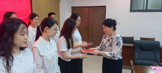 宣誓结束后,魏凤英同志代表“老党员”向所有新发展党员表示祝贺,并提出了几点要求和殷切嘱托。她强调,党员要充分发挥先锋模范作用,发扬 “牺牲” 精神,把集体的利益放在第一位;在学习、工作和生活中主动担当、甘于奉献;要从身边小事做起,在点滴中彰显党员风范,以实际行动诠释见微知著、慎微慎独的党性修养。