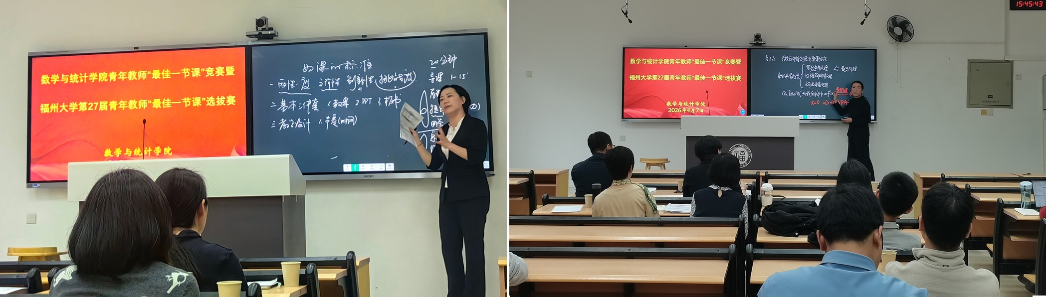 第二十七届青年教师“最佳一节课”教学竞赛选拔赛在旗山校区西1-105教室举行。校督导洪婷婷和缪园冰,学院党委书记郑世珠、院长刘勇进、副院长程航、工会主席吕书龙、统计系主任黄文彬、数学系主任严锴、信息系主任曾庆厚以及院督导曾勋勋和薛美玉、院工会副主席王平等老师担任评委,参赛教师及学院部分青年教师参加本次活动。活动由院工会主席吕书龙主持。